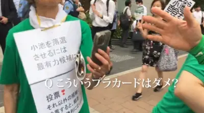 【動画】体にプラカード装着して小池氏演説に侵入試みる→優秀なスタッフにより排除「都民の声を伝える場ではなく演説を聴く場なので駄目です」