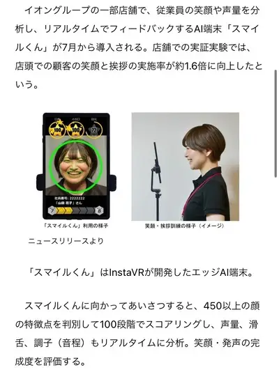 【画像】イオングループ、中国化「従業員の笑顔や声量をAIでリアルタイム評価」笑顔と挨拶の実施率1.6倍向上