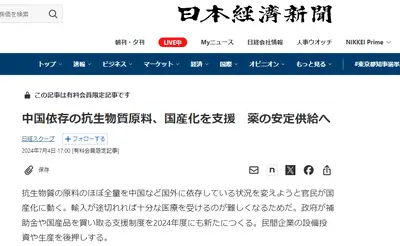 日本の抗生物質のほぼ全部が中国からの輸入なため、日中戦争開戦と同時に医療物質が消えると判明