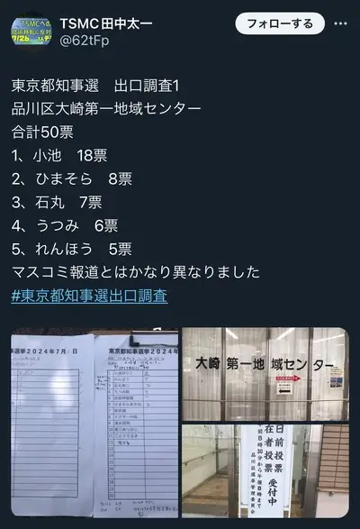 【超悲報】出口調査の順位なんと「百合子→ひまそら→石丸→無名→蓮舫」wwwww