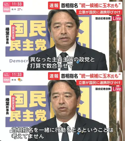 【失敗w】立憲が企む「総理指名、玉木で統一」 国民・榛葉「異なった主義主張の政党と打算で数合わせて総理指名を一緒に行動をとることは考えてない」