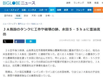 【速報】JA施設タンクに工作や破壊の跡 始まったか・・・