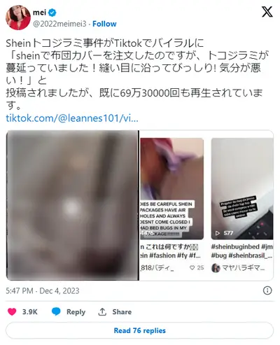 【中華スパイラル】Sheinで布団カバーを購入した結果「縫い目に沿ってアレがびっしり! 」Tiktokでバズり話題※画像ボカシ済み