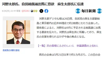 【速報】河野太郎、総裁選出馬を宣言『皆さん長らくお待たせしました(笑)』