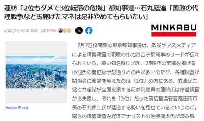 【悲報】蓮舫支持者さん、投げやりになる「小池が勝ったら東京も日本も終わり。後悔しても知らん」