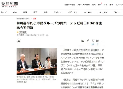 【まずはメディア介入】前川喜平氏ら市民グループの提案「前川氏を社外取締役に推薦する」 なおテレビ朝日HDの株主総会で否決