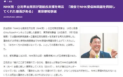 【都知事選選挙枠】警視庁がNHK党立花党首に警告 警視庁は選挙後に本格的な捜査へ