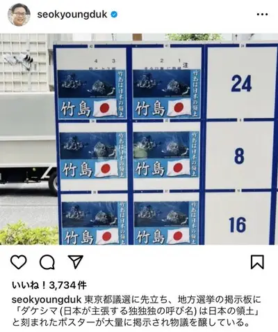 【画像】竹島の選挙ポスター、韓国の例の教授の耳に入り発狂中wwwwww