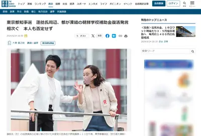 【東京都知事選】蓮舫氏周辺、都が凍結の朝鮮学校補助金復活発言相次ぐ 本人も否定せず