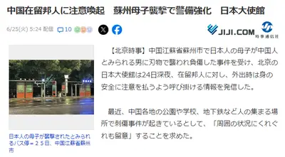 【緊急】中国で日本人学校のスクールバスを待っていた日本人母子が襲われる 大使館が緊急発表「中国在留邦人に注意喚起」