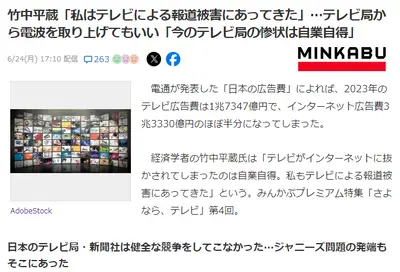 竹中平蔵「私はテレビによる報道被害にあってきた」テレビ局から電波を取り上げ許可きたあああ!!