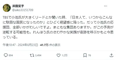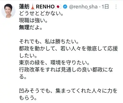 蓮舫支持者「小池リードと聞いた時、「日本人ていつからこんなに駄目な国民になったのか」と絶望」