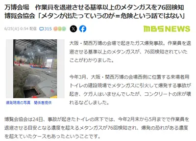【悲報】万博会場、急にメタンガス噴出始まる 爆発現場以外でも5か所 基準値超え76回検知