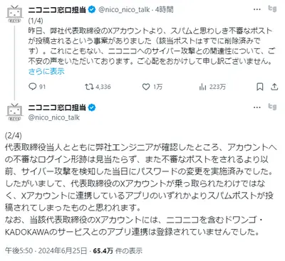 川上量生(55)「夏野剛のアカウント乗っ取りはNEWSPICKSのせい」→ニコニコ公式「乗っ取られてなかったわ、連携アプリがスパム投稿してた」