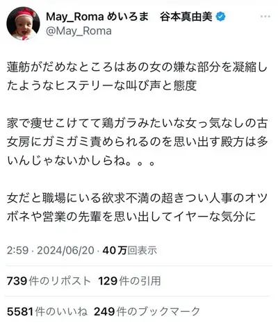 めいろま「蓮舫がだめなところはあの女の嫌な部分を凝縮したようなヒステリーな叫び声と態度」