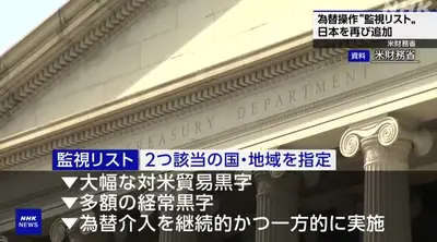 【速報】アメリカ財務省 日本を為替操作「監視リスト」対象に指定
