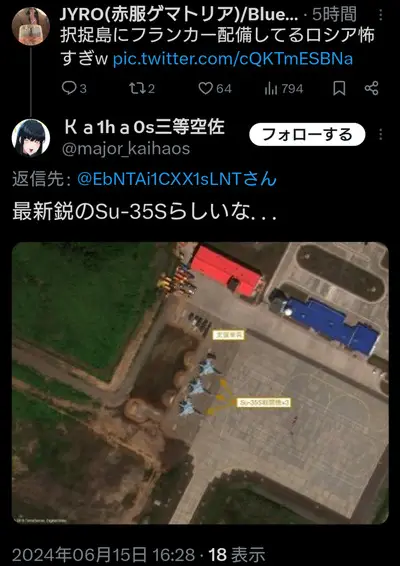 【悲報】ロシアさん、択捉島にSu-35を配備してる模様wwwwwwwwwwww