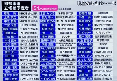 【都知事選】それで出馬する54名の肩書一覧を御覧ください さぁ誰にする都民wwww