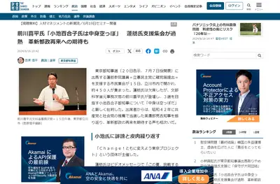 【悲報】蓮舫、3位になりそう。小池圧勝確実。2番手で蓮舫と石丸伸二が競ってる模様