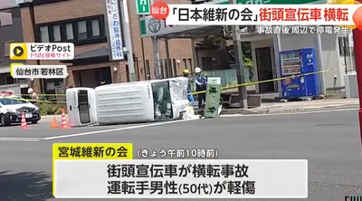 【速報】維新の街宣車が横転、電気設備を破損「猛暑に300世帯が停電発生」 当街宣車は先月に市営バス運行を妨げるトラブルも