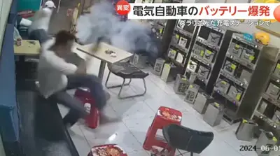 【画像】中国のEV車のバッテリー、爆破で火炎放射する 当局「急速に燃え広がるから注意しろ」 何に注意したらいいんだよおw