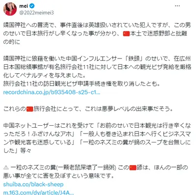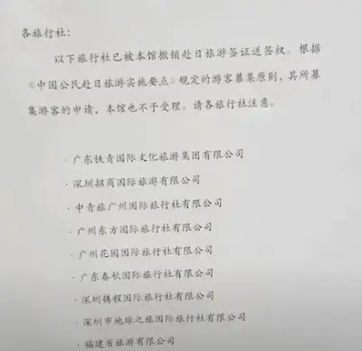 【拡散希望】日本大使館が靖国放尿事件に報復、中国旅行会社11社の日本観光ビザの申請代理権を取り消し通知