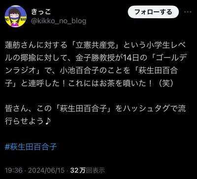 【悲報】パさんら、「立憲共産党」呼ばわりに対抗し「萩生田百合子」という言葉を作り内輪で盛り上がる