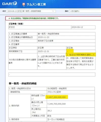 【速報】韓国造船・サムスン重工業、ロシアから17隻分(10兆₩規模)の契約解除通知に対して訴訟 露「手付金8億ドルと遅延利子の返還も要求する」