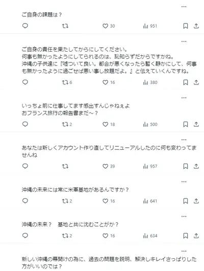 今井絵理子「新しい沖縄の幕開け」→リプ欄で襲撃を受けている模様wwww