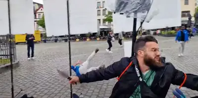 【画像怖すぎ】ドイツで行われた市民集会にイスラム教徒が乱入 保守系活動家を狙い刃物で暴れる