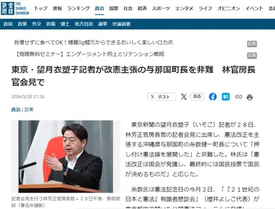 望月衣塑子「与那国町長が中国に対して好戦的な発言を繰り返しているんです」 林官房長官「」