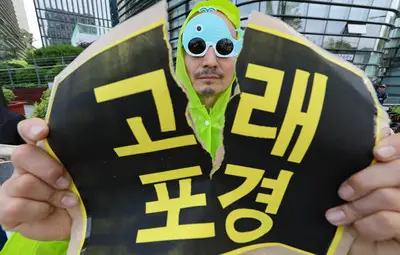 【速報】韓国動物権活動家の連合、ふざけた格好をして在韓日本大使館前で抗議「捕鯨やめろ!」「命尊重の責任を果たせ!」