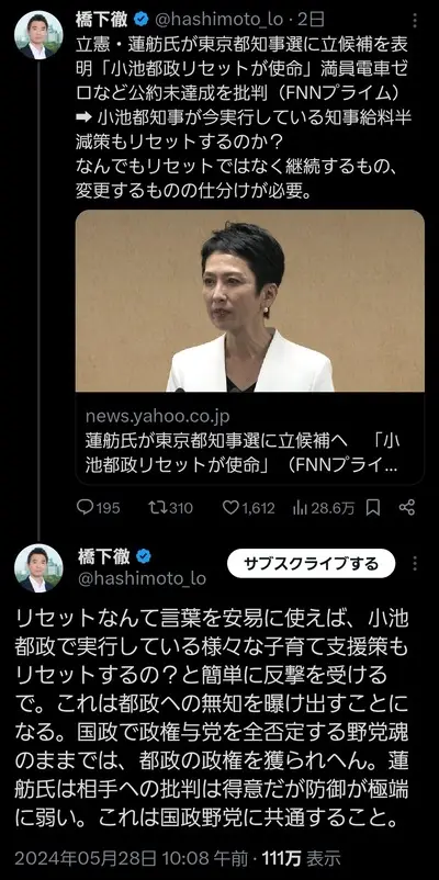【朗報】中華系テレビ報道「我が中国系議員の蓮舫氏が日本の東京都知事選に出馬!応援しよう!!!」