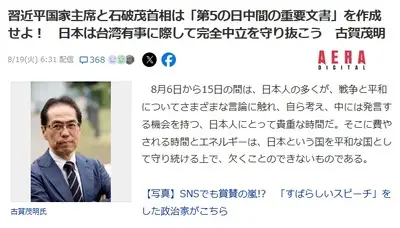【AERA】日本と中国は何がなんでも戦争しないことを約束した重要文書を作成せよ