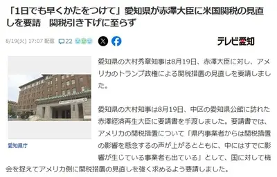 【速報】愛知県、赤澤大臣にアメリカ関税の見直しを要請 関税は合意通りの引き下げされておらず