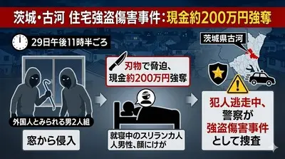 【速報】「日本の年末年始、地獄と化す」住宅に外国人とみられる男2人が押し入る 就寝中に刃物を突きつけ現金約200万円を奪い逃走