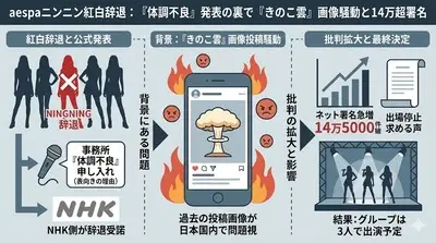 【速報】NHK紅白の製作統括P、出場辞退のaespaメンバー(きのこ雲ランプ)について 「体調不良はやむを得ない。お三方で精いっぱいパフォーマンスしていただきたいと思っています」