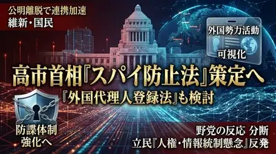 【速報】高市政権、外国勢力による情報窃取を阻止するための「スパイ防止法」の検討に着手 立憲民主党「重大な人権侵害を引き起こすリスクがある」