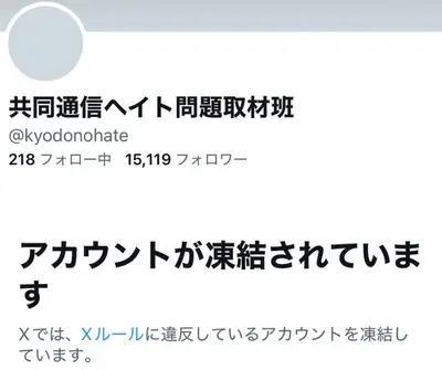 【速報】共同通信ヘイト問題取材班のXアカウント凍結 今年最後のニュースになるwww