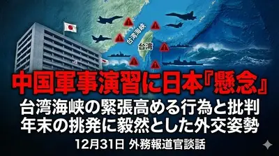 【速報】日本、外務報道官談話により中国に懸念伝達「台湾海峡の緊張を高める行為だ」