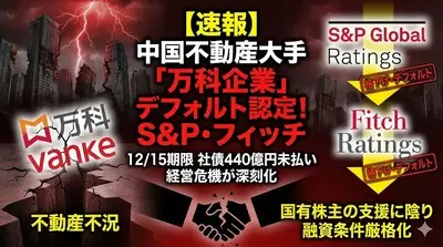 【崩壊速報】中国不動産大手の万科、期日内に社債償還できず 米格付け会社が「一部デフォルト」に認定 逝った━(゚∀゚)━!