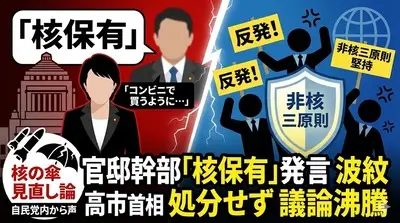 【速報】高市首相、1週間経過も「核保有発言」処分せず!!!
