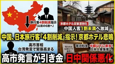 【速報】中国政府「日本への旅行者を6割にまで減少を国内旅行会社に指示」日本国民、圧倒的感謝へ