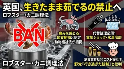 【悲報】現英政権「意識ある状態でカニなど甲殻類をゆでる調理法禁止」一方、日本人はカニカマを極限まで極めていた