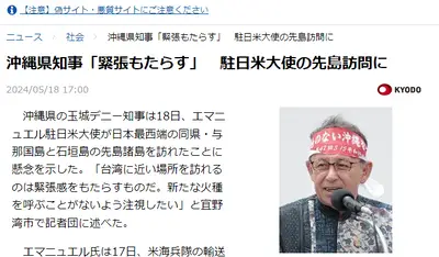 【速報】沖縄県の玉城デニー知事、米大使の与那国島と石垣島への訪問に嫌悪感「新たな火種を呼ぶことがないよう注視したい」