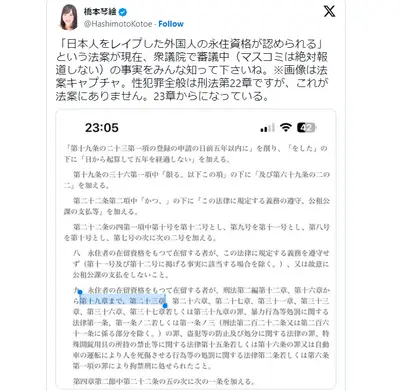 【速報】「日本人をレ●プした外国人の永住資格が認められる」という法案が現在、衆議院で審議中