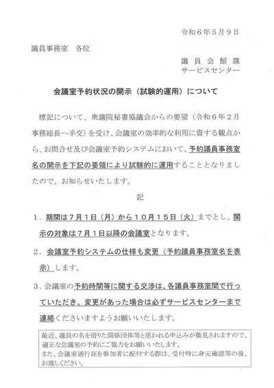 匿名パヨク議員がパヨク団体に議員会館を記者会見場として使わせてるアレ、封じられる模様