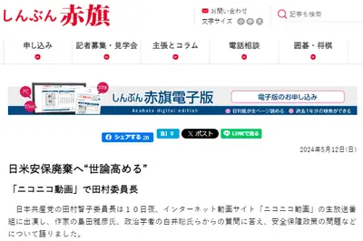 共産党・田村委員長、日米同盟に宣戦布告「日米安保廃棄の世論を高めて行く」