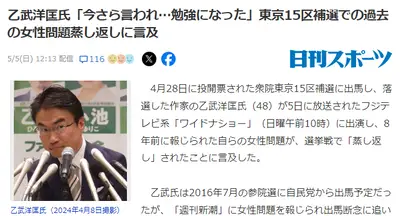 乙武さん「私が昔不倫してたのは事実ですが、再チャレンジの機会すら貰えないのはおかしい」