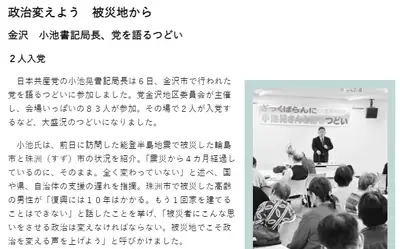 ボランティアを妨害する維新や自民党に失望した能登地震の被災者たちが会場いっぱい、その場で共産党に続々と入党!※